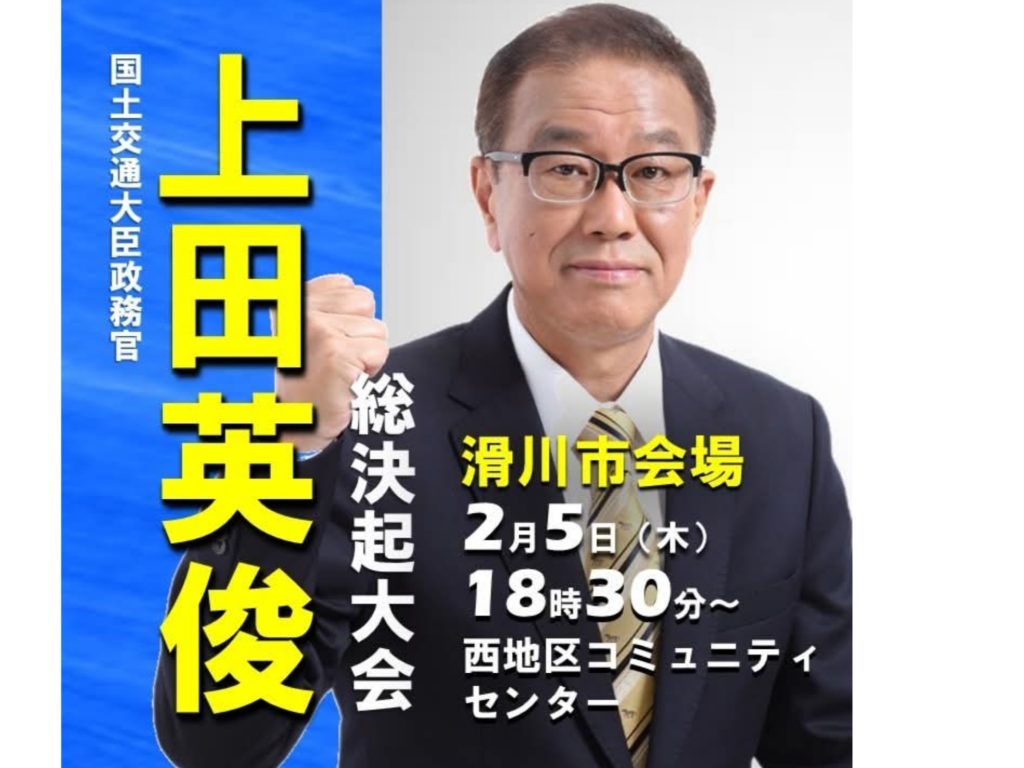 「2月5日の総決起大会」2026 2.5 2026年2月5日 2026年2月5日 「2月5日の総決起大会」 18:30より、滑川市の「滑川西地区コミュニティセンター」へ伺います。ぜひお誘いあわせのうえ、お立ち寄りください。上田英俊の想いを直接お聴きいただけたら幸いです。ご来場の際は、運転やお足元にくれぐれもお気をつけてお越しください。